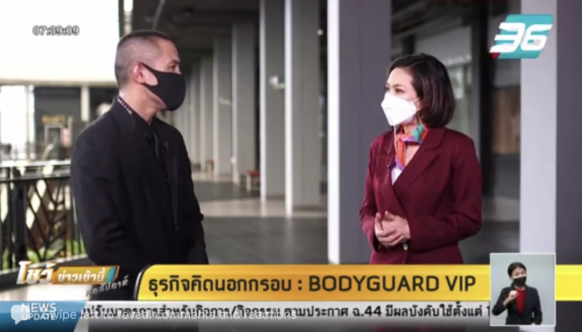 BODYGUARD VIP THAILAND ให้สัมภาษณ์ในรายการ โชว์ข่าวเช้า PPTV HD 36 โดยคุณจุ๊กจิ๊ก สุภาดา พิธีกรช่วง ธุรกิจคิดนอกกรอบ ได้สัมภาษณ์แบบเจาะลึกเกี่ยวกับอาชีพบอดี้การ์ด กว่าจะมาเป็นบอดี้การ์ดมืออาชีพต้องฝึกอะไรมาบ้าง? โดยคุณโอ๊ค นันท์ธนวรรธน์ นรรัตน์ หัวหน้าฝ่ายปฏิบัติการรักษาความปลอดภัยบุคคลสำคัญ ของทางบริษัท บอดี้การ์ด วีไอพี (ประเทศไทย) จำกัด ได้เล่าถึงประสบการณ์ในการทำงานสายอาชีพบอดี้การ์ด และการฝึกของบอดี้การ์ดในหลักสูตรต่างๆรวมไปถึงหลักสูตร VIP PROTECTION ซึ่งถือว่าเป็นหลักสูตรสำคัญในสายงานบอดี้การ์ดอารักขาบุคคลสำคัญ